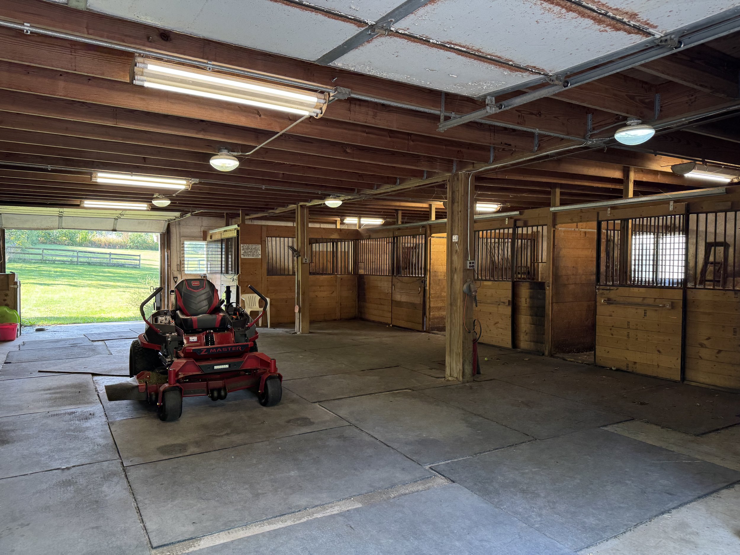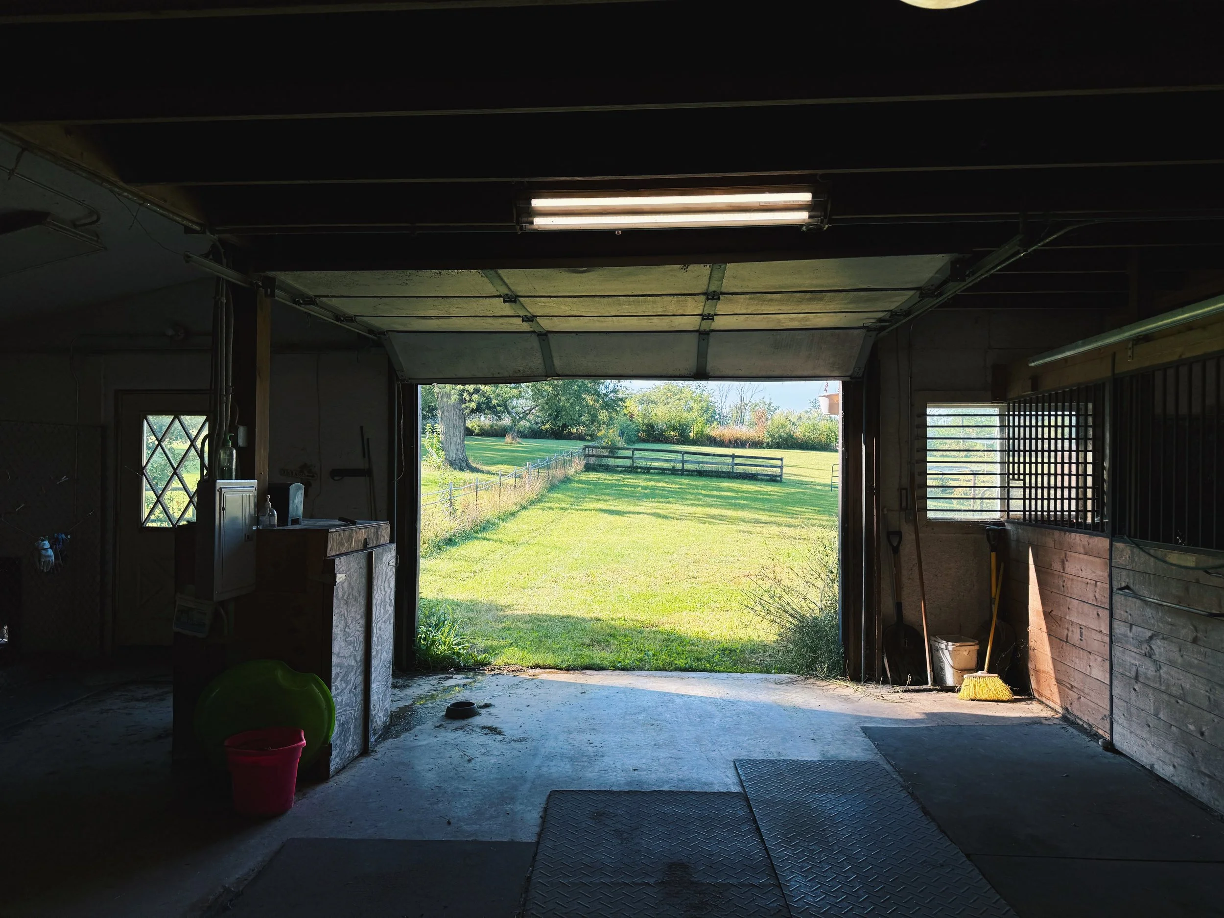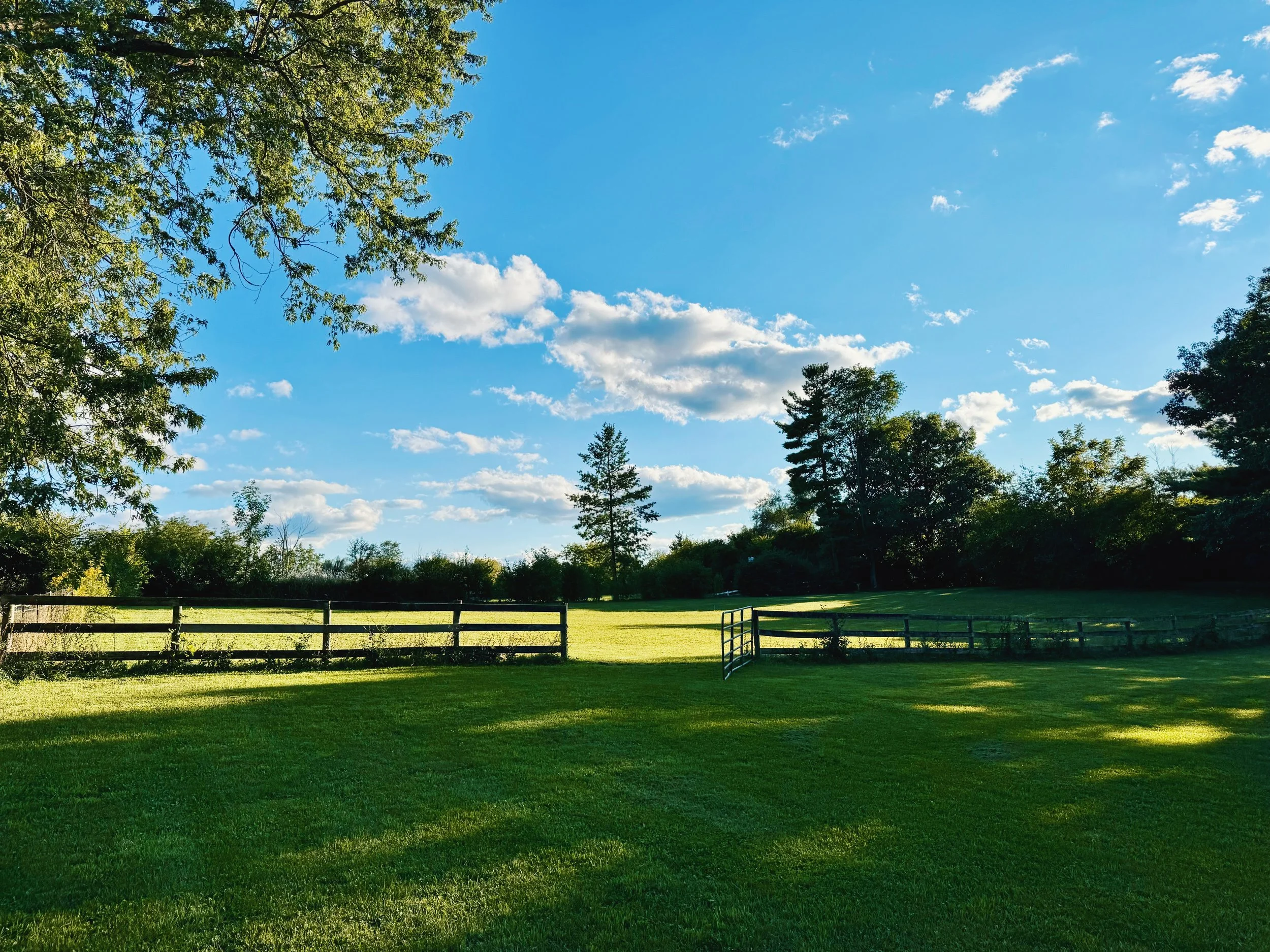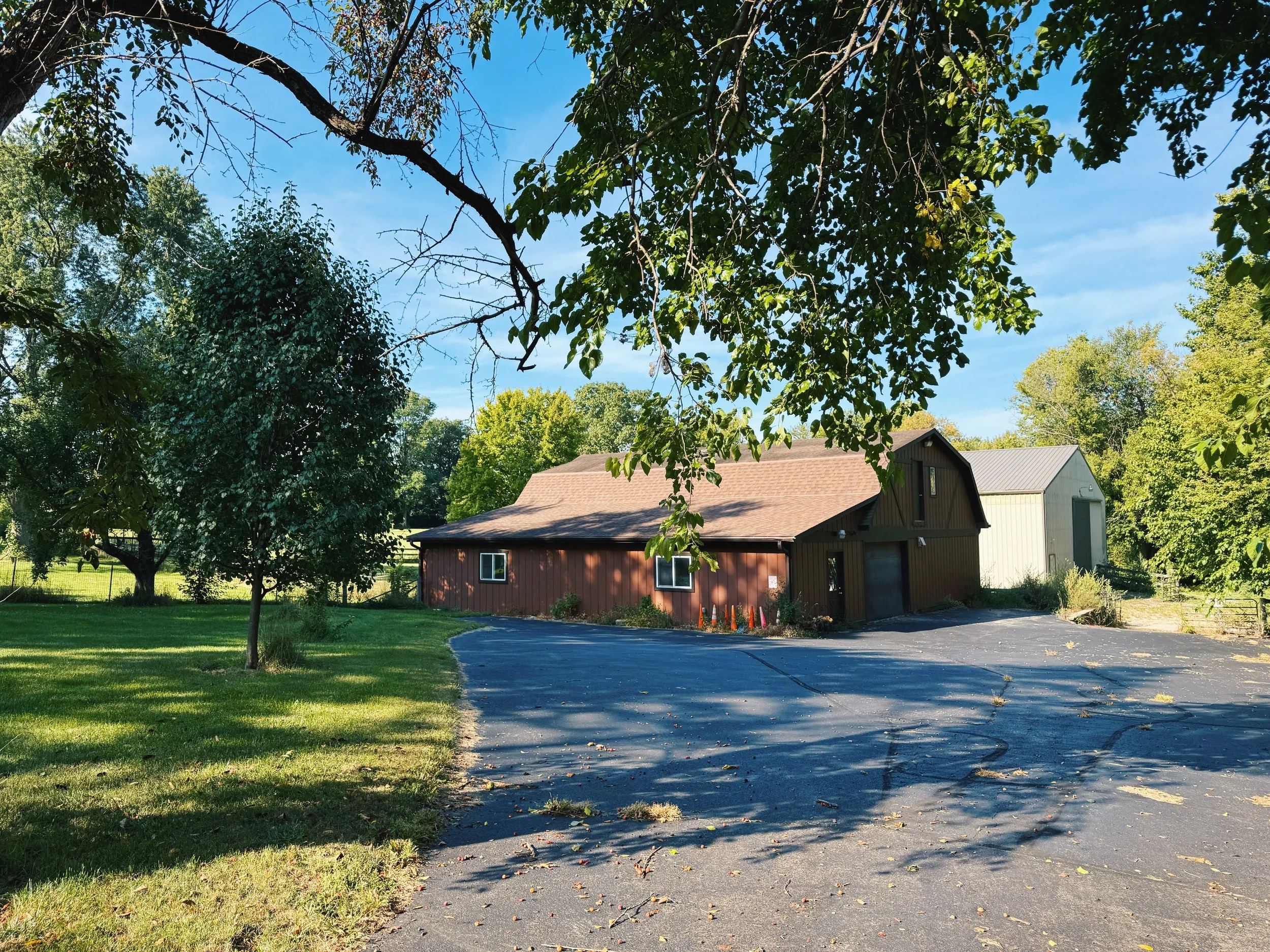 our five-acre former horse farm features a sprawling paddock, horse arena, and barn with six stables and a loft. the property is populated by mature trees and green fields, along with a variety of flowers, fruiting trees, birds, and three barn cats.